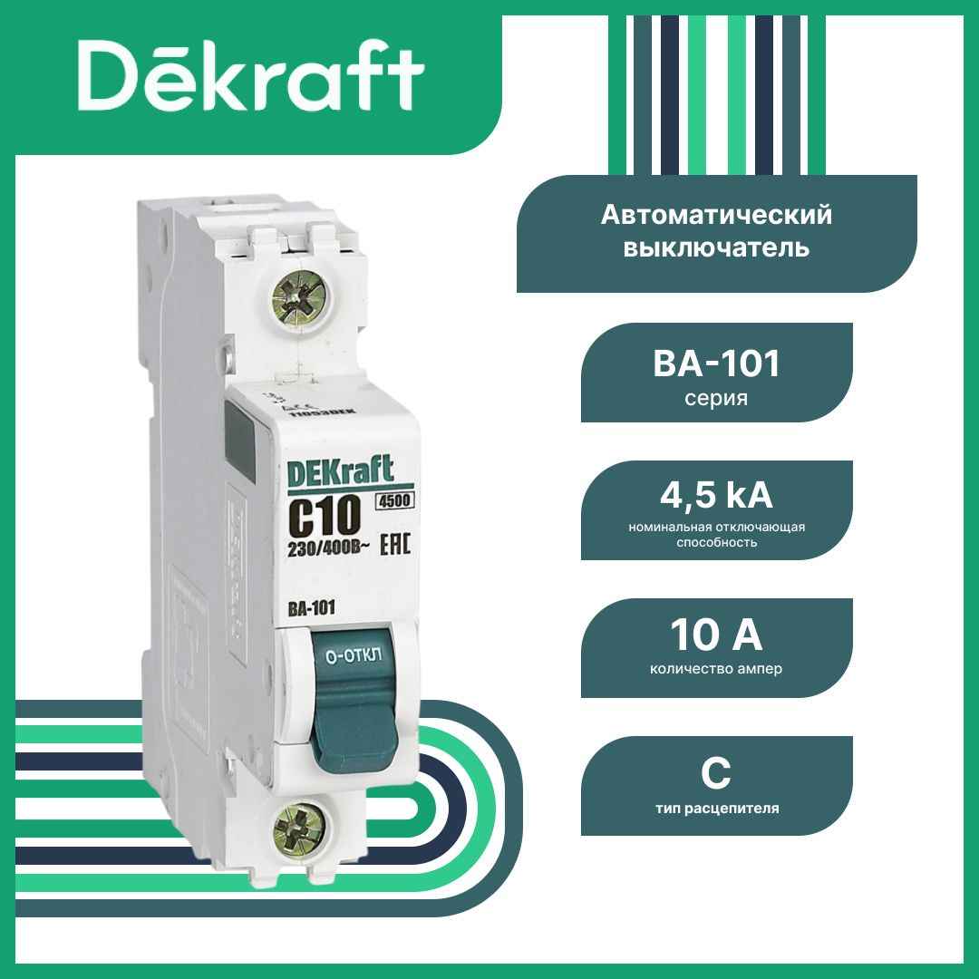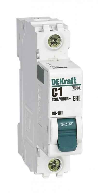 Автоматический выключатель серии ВА-101 DEKraft; 1P; номинальный ток 1 А; характеристика С; отключающая способность 4,5 кА. Новый механизм расцепления мгновенно разрывает цепь при возникновении аварии. 5 монолитных заклепок повышают прочность корпуса аппарата. Сплошная лицевая панель обеспечивает безопасность эксплуатации аппарата. Боковые каналы охлаждения повышают стабильность работы при высоких температурах окружающей среды. Полностью автоматизированный контроль качества производства.