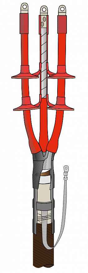 Муфта термоусаживаемая концевая наружной установки для кабеля с бумажной изоляцией на напряжение до 10 кВ включительно с непаянным заземлением 3КНТпН-10-70...120 (с наконечниками)