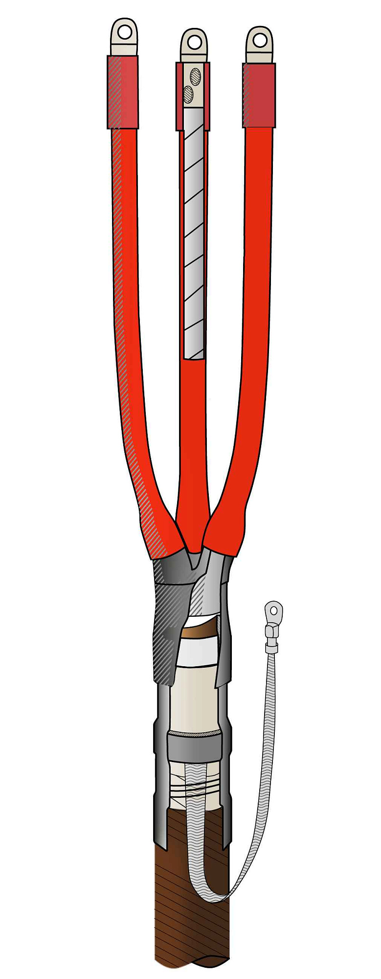 Муфта термоусаживаемая концевая внутренней установки для кабеля с бумажной изоляцией на напряжение до 10 кВ включительно с непаянным заземлением 3КВТпН-10-35...50 (с наконечниками)