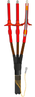 Муфта термоусаживаемая наружной установки на трехжильный кабель с СПЭ-изоляцией без брони на напряжение до 10 кВ с проволочным экраном 3ПКНТпНнг-LS-10-35...50-КПЭ (с наконечниками)
