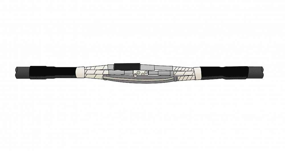 Муфта термоусаживаемая соединительная для трехжильного кабеля с СПЭ изоляцией на напряжение до 10 кВ с проволочным экраном 3ПСТ(с)нг-LS-Б-10У-35...50-КПЭ с броней