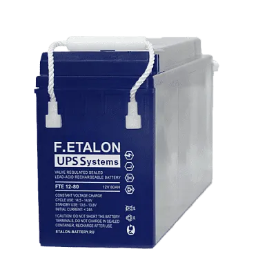 Аккумулятор F.ETALON FTE 12-80 — это герметичная свинцово-кислотная батарея с технологией AGM (Absorbent Glass Mat), номинальным напряжением 12 В и емкостью 80 Ач. Он состоит из 6 элементов и предназначен для использования в источниках бесперебойного питания, телекоммуникациях, центрах обработки данных, охранных и пожарных системах, а также в малом производстве.