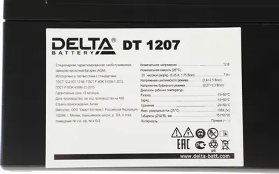 Купите аккумулятор delta dt 1207 для ИБП или других систем резервного питания — это оптимальный выбор в своём классе по надёжности, компактности и универсальности.