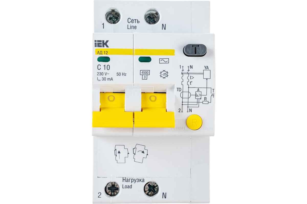 Авт.диф. 2п 10А 30мА АД-12 4,5 кА ИЭК купить в Москве - цены, доставка по РФ