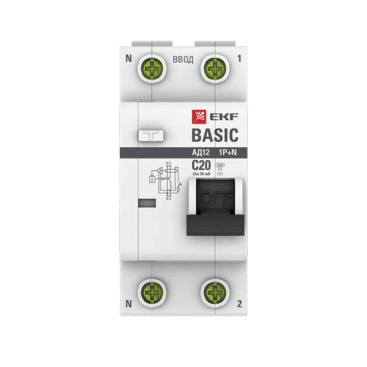 Авт.диф. 2п 20А 30мА АД-12 1P+N АС 4,5кА EKF Basic купить в Москве - цены, доставка по РФ