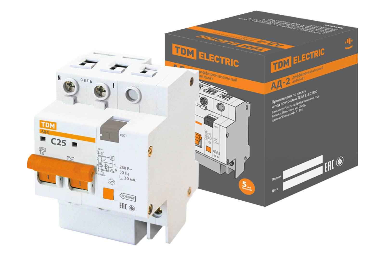 Авт.диф. 2п 25А 30мА АД- 2 TDM купить в Москве - цены, доставка по РФ