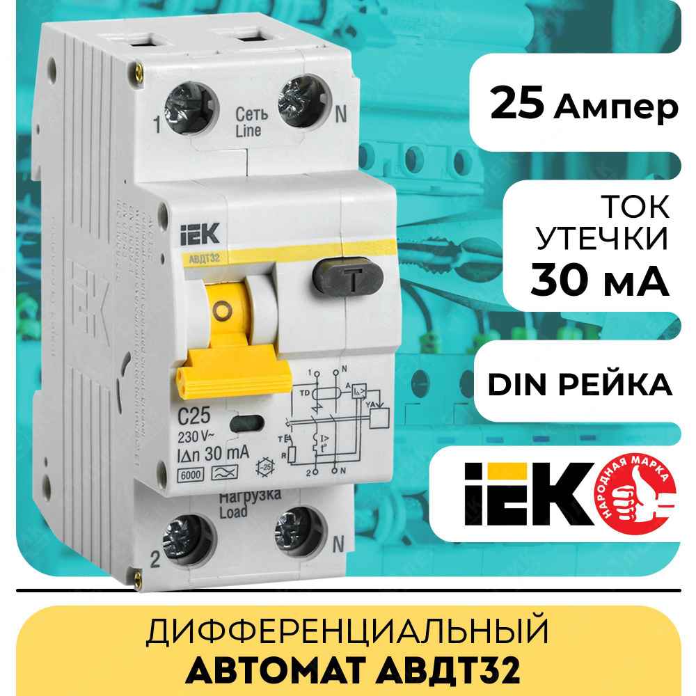 Авт.диф. 2п 25А 30мА АВДТ32 4,5 кА ИЭК GENERICA