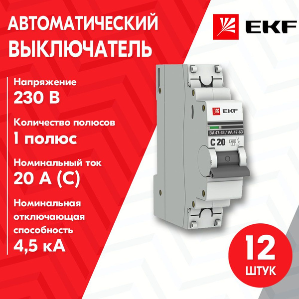 Автомат 1п 20А (C) (ВА 47-63N) 4,5kA EKF PROxima купить в Москве - цены, доставка по РФ