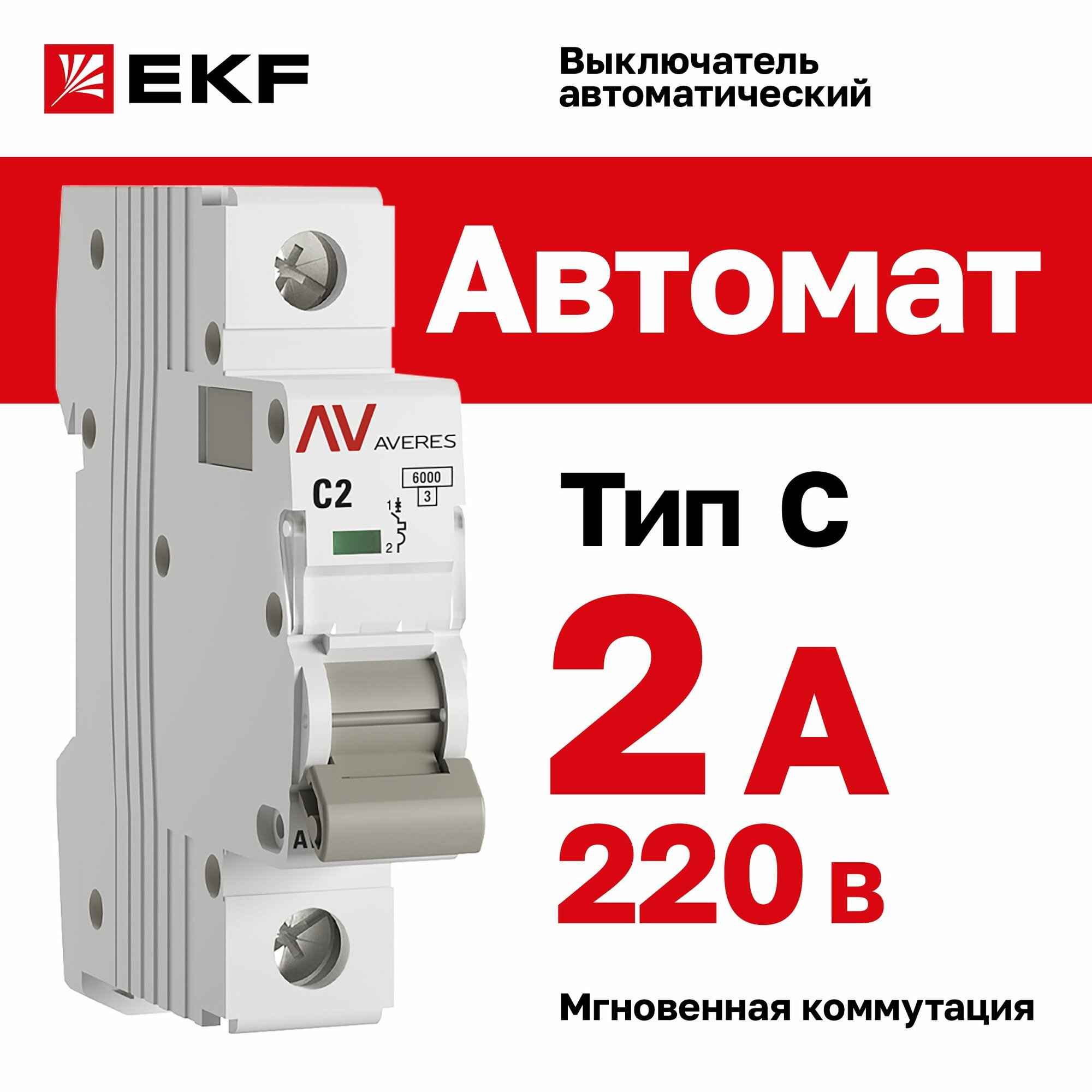 Автомат 1п 2А (C) (AV-6) 6кА EKF AVERES купить в Москве - цены, доставка по РФ
