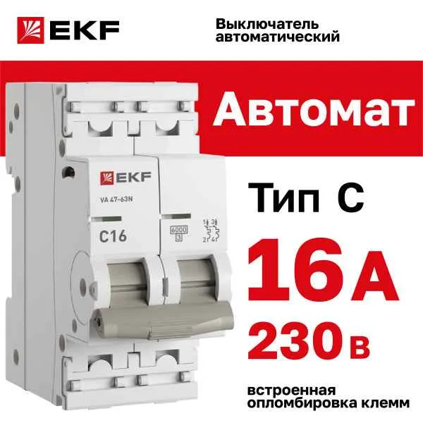 Автомат  2п 16А (C) (ВА 47- 19) 6kA SHCET