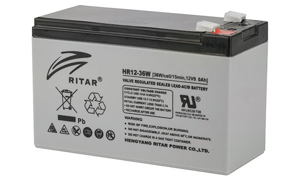 Ritar HR12-36W — это компактная и мощная свинцово-кислотная аккумуляторная батарея с технологией AGM, предназначенная для работы в составе источников бесперебойного питания (UPS), охранных и пожарных систем, а также других устройств, требующих стабильного резервного электропитания. Рассчитана на работу в буферном режиме до 8 лет.