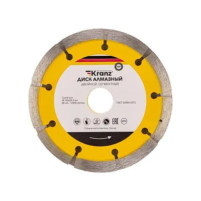 Диск алмазный двойн. сегментный 125х22.2мм сухая резка Kranz KR-90-0101-2