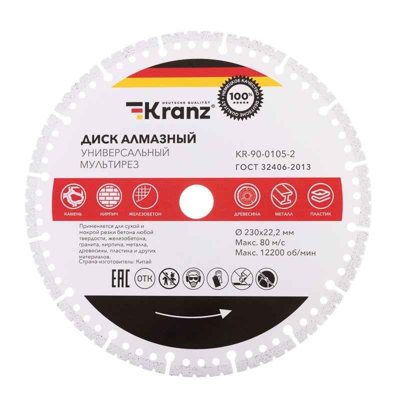 Диск алмазный универс. профессиональный Мультирез 230х22.2мм вакуумное спекание Kranz KR-90-0105-2