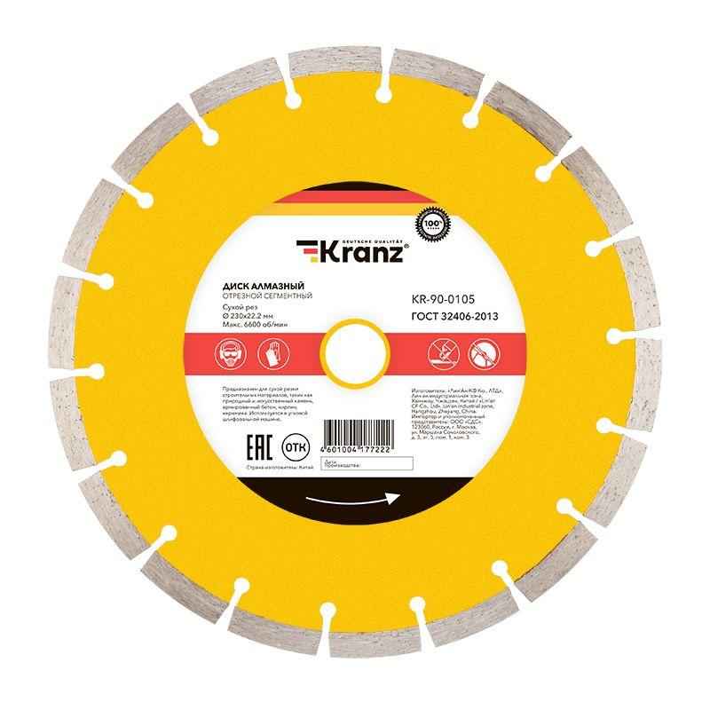 Диск отрезной алмазный сегментный 230х22.2х2.4х10мм Kranz KR-90-0105