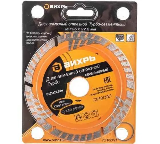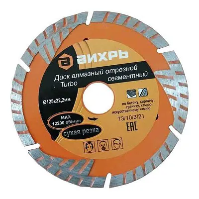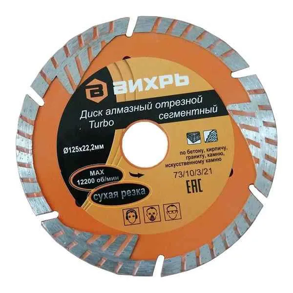 Диск отрезной алмазный сегментный Турбо 125х22.2мм сухая резка Вихрь 73/10/3/21