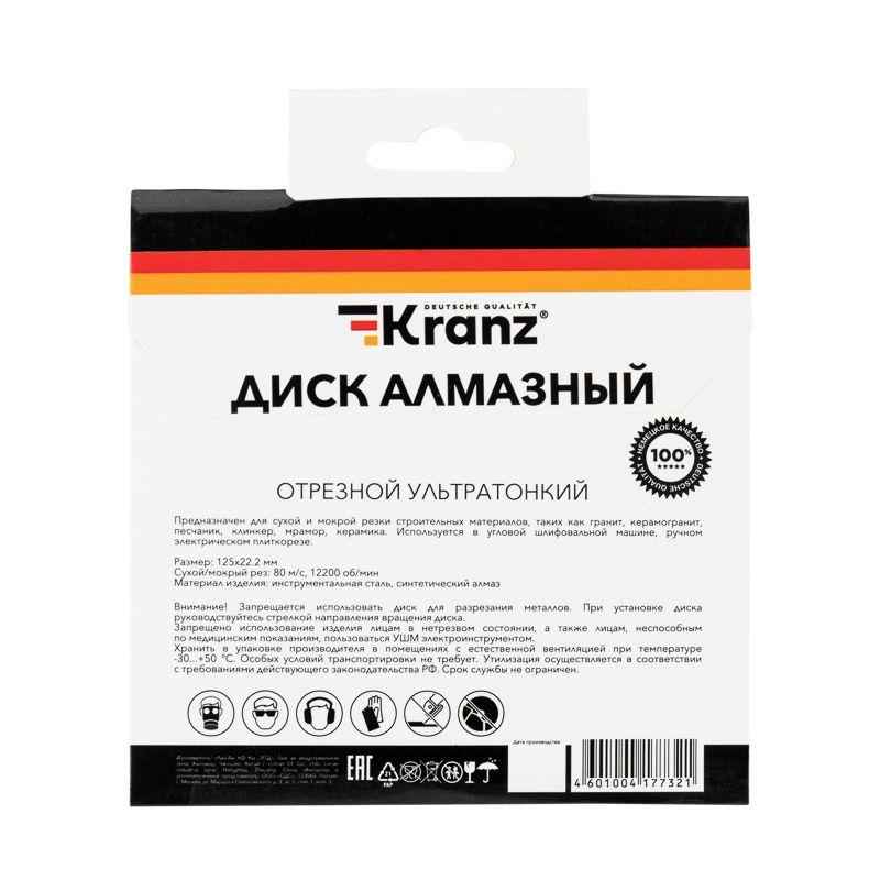 Диск отрезной алмазный ультратонкий 125х22.2мм Kranz KR-90-0141