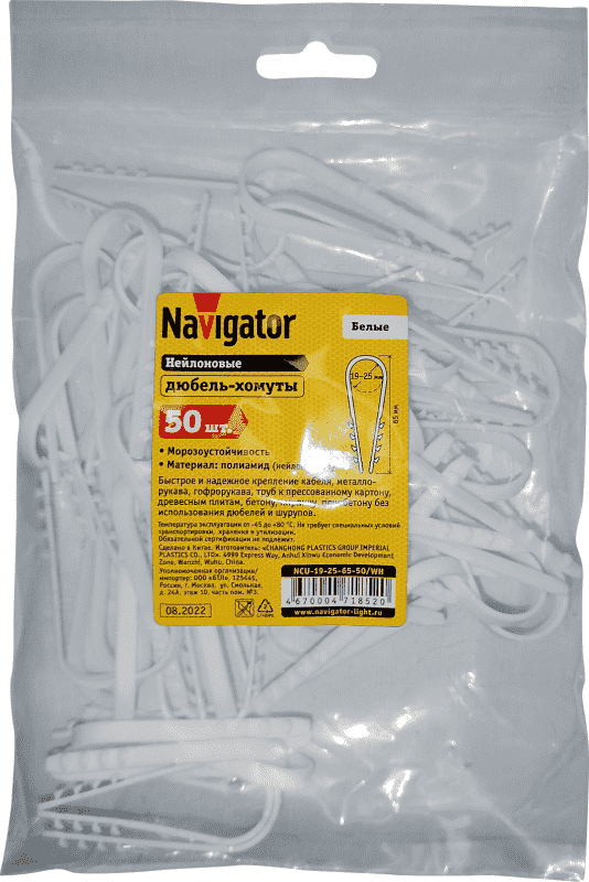 Дюбель-хомут для круглого кабеля 71 852 NCU-19-25-65-50/WH бел. (уп.50шт) Navigator 71852