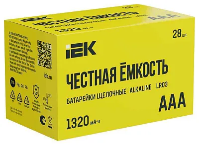 Элемент питания алкалиновый AAA/LR03 Alkaline бокс (уп.28шт) IEK ABT-LR03-OP-B28