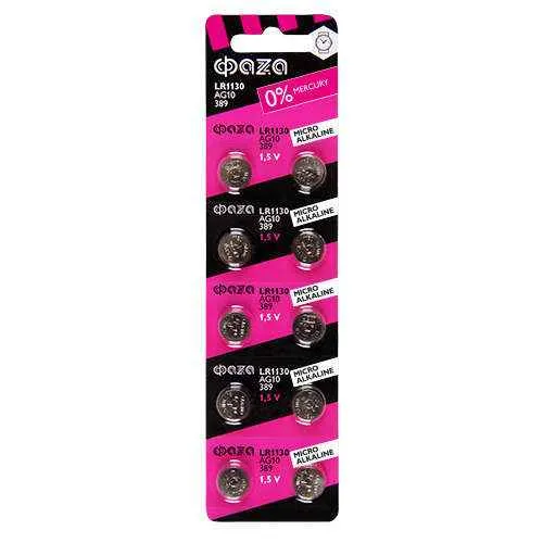 Элемент питания алкалиновый "таблетка" LR54/LR1130/AG10/G10 1.5В BL-10 (уп.10шт) ФАZА 5002739