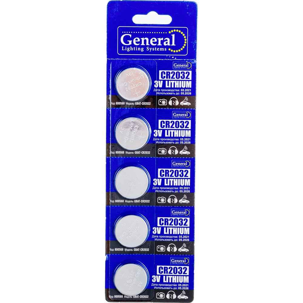 Элемент питания CR2032 GBAT-CR2032 кнопочная литиевая 5pcs/card General 800568