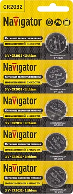 Элемент питания литиевый CR2032 94 765 NBT-CR2032-BP5 (блист.5шт) Navigator 94765