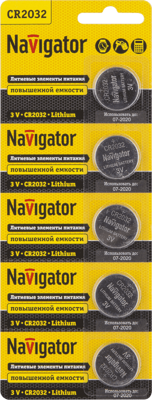 Элемент питания литиевый CR2032 94 765 NBT-CR2032-BP5 (блист.5шт) Navigator 94765