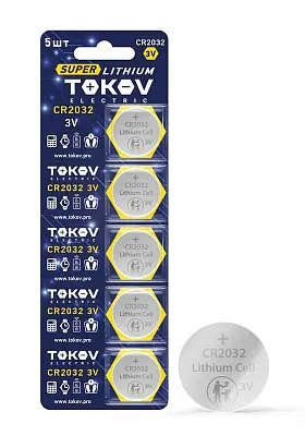Элемент питания литиевый CR2032 таблетка (блистер 5шт) TOKOV ELECTRIC TKE-LI-CR2032/B5