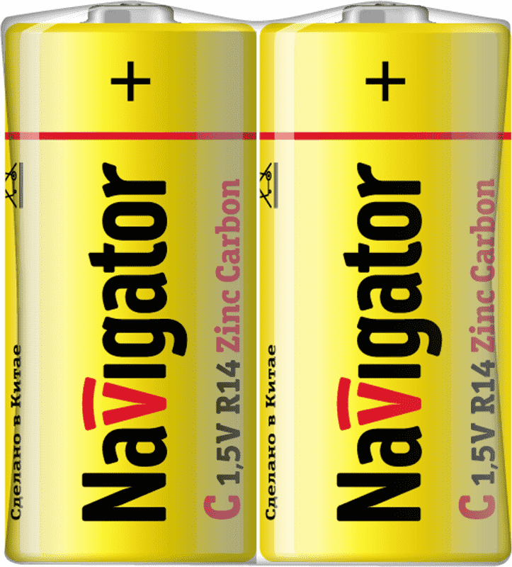 Элемент питания 94 760 NBT-NS-R14-SH2 (шринка 2шт) Navigator 17010 представляет собой цилиндрическую цинково-угольную батарейку типоразмера C/AM 2.