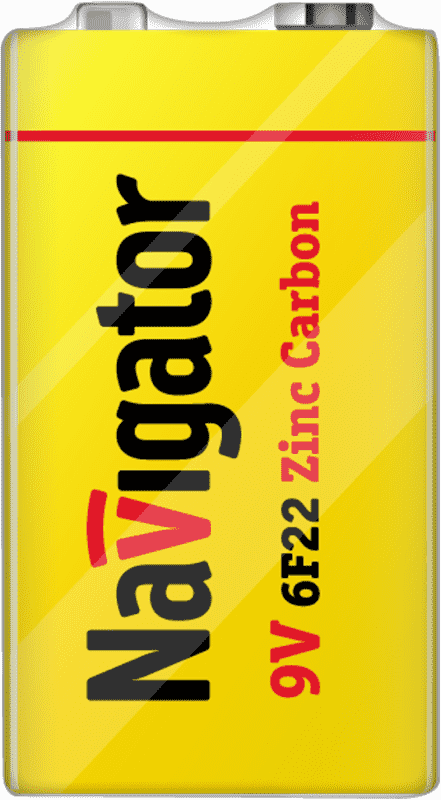 Элемент питания 94 762 NBT-NS-6F22-SH1 (шринка 1шт) Navigator 17012 представляет собой прямоугольную плоскую цинково-угольную батарейку номинальным напряжением 9 В.