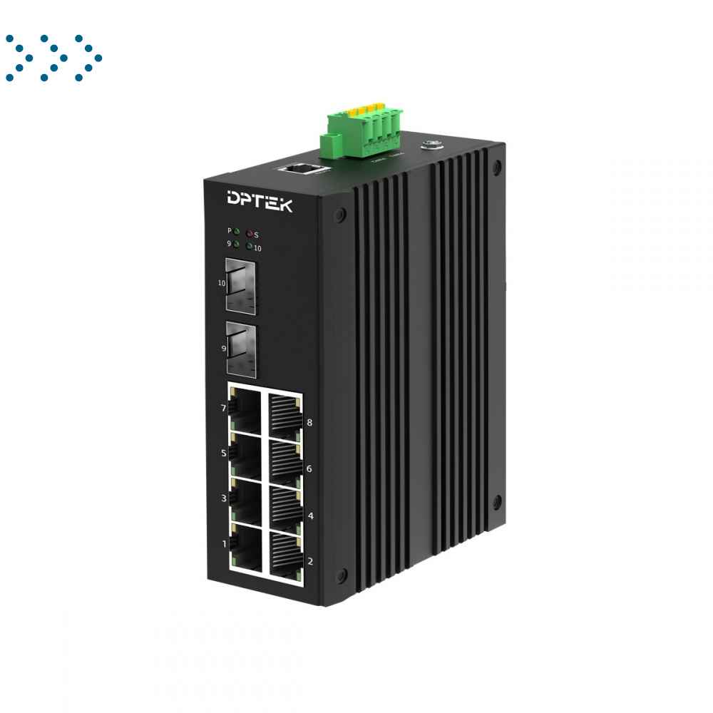 Ethernet-коммутатор управляемый промышленный 2 уровня с 8*10/100Base-T RJ45 портами и 2*1000Base-X SFP слотами, установка на DIN-рейку купить в Москве - цены, доставка по РФ