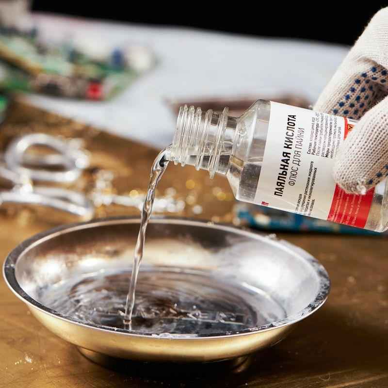 Флюс для пайки "паяльная кислота" 100мл (масленка) REXANT 09-3611 применяется как вспомогательное средство для паяльных работ и используется как средство подготовки поверхности для пайки,для удаления оксидов с поверхности.
