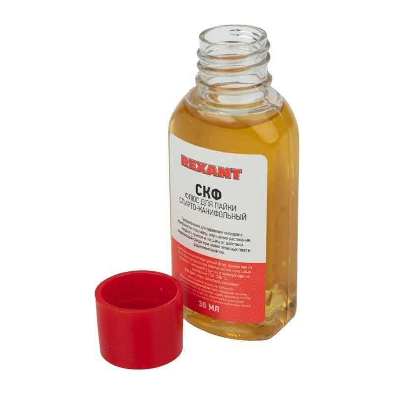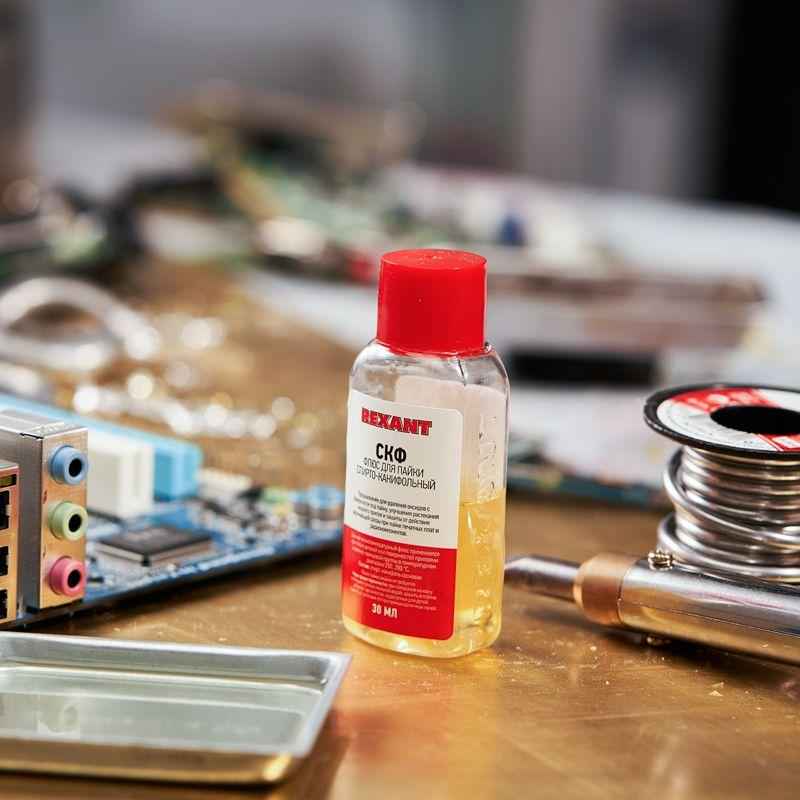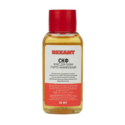 Флюс для пайки СКФ спирто-канифольный 30мл Rexant 09-3640 применяется как вспомогательное средство для паяльных работ и используется как средство подготовки поверхности для пайки.