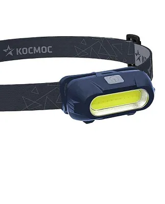 Фонарь аккумуляторный налобный 3Вт COB LED съемный Li-ion 18650 800мА.ч корпус ABS-пластик USB-шнур type C регулируемый эласт. ремешок КОСМОС KOC514Lit
