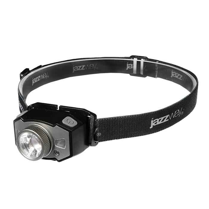 Фонарь аккумуляторный налобный AccuH1-L5WZ-bk zoom LED 5Вт + 2хRED SMD IP54 5 режимов: 100проц. 180лм 3.5ч/50проц. 110лм 5.5ч/30проц. 65лм 15ч/красн. 28ч/мигающ. красн. 12ч аккум. 0.8А.ч управл. жестами черн./сер. JazzWay 5036642