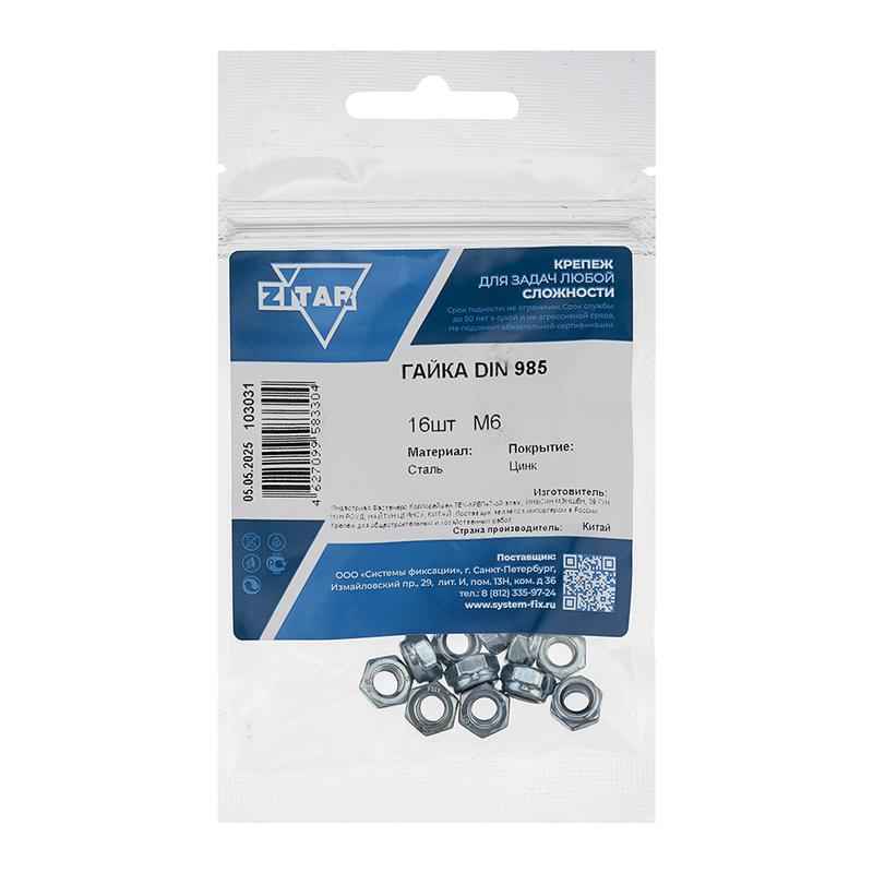 Гайка самоконтрящаяся М6 DIN 985 цинк. (пакет) (уп.16шт) Tech-Krep/Zitar 103031