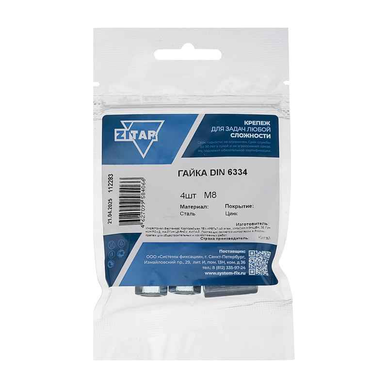Гайка соединительная М8 DIN 6334 цинк. (пакет) (уп.4шт) Zitar 112283