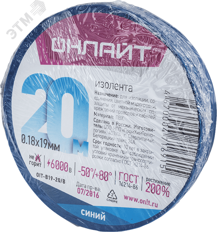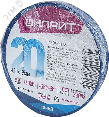 Изолента ПВx 0,18x19ммx20м синяя ОНЛАЙТ 71 691 купить в Москве - цена от 45.35 ₽ | Гамма-компоненты