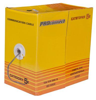 Кабель UTP 2PR 24AWG CAT5e CCA PROCONNECT. Неэкранированная витая пара, материал проводника алюминий плакированный медью CCA диаметром 0,5 мм. (24 AWG). Материал оболочки – ПВХ (PVC).