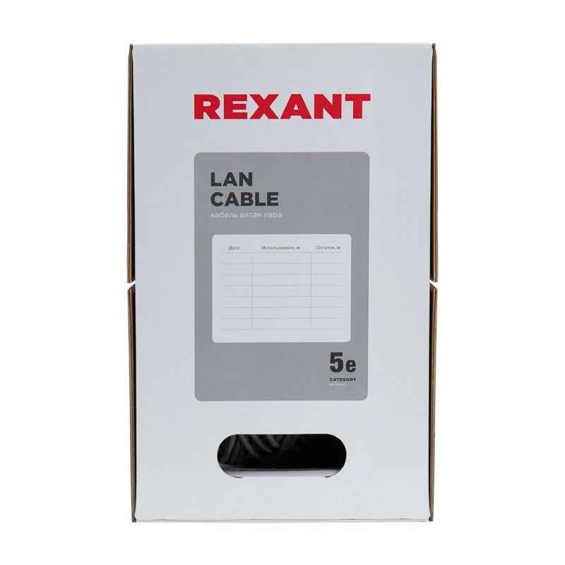 Кабель UTP 4PR 24AWG CAT5e 305м REXANT. Неэкранированная витая пара, материал проводника высокоочищенная бескислородная медь, диаметром 0,5 мм. (24 AWG). Материал оболочки – ПВХ (PVC).