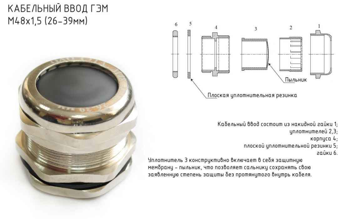 Кабельный ввод М 63 латунный УТ1,5 IP66/IP67/IP68 предназначен для герметичного ввода кабелей с диаметром от 37 до 44 мм, обеспечивая защиту от влаги и пыли.