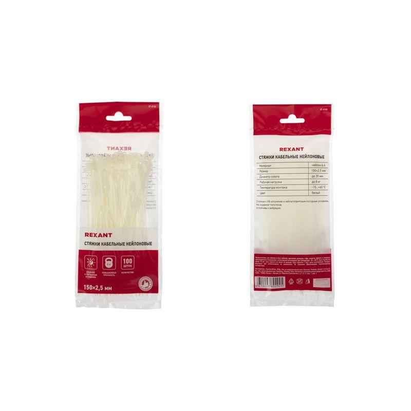 Хомут нейлоновый (кабельная стяжка) 150х2,5 мм белый REXANT предназначен для крепления или обвязки в жгут кабелей и проводов, крепления гибких гофротруб, а также других предметов к несущей поверхности или для соединения между собой. Такая стяжка используется при проведении электромонтажных работ, при монтаже структурированных кабельных систем, для бытовых нужд, а также в других отраслях народного хозяйства.