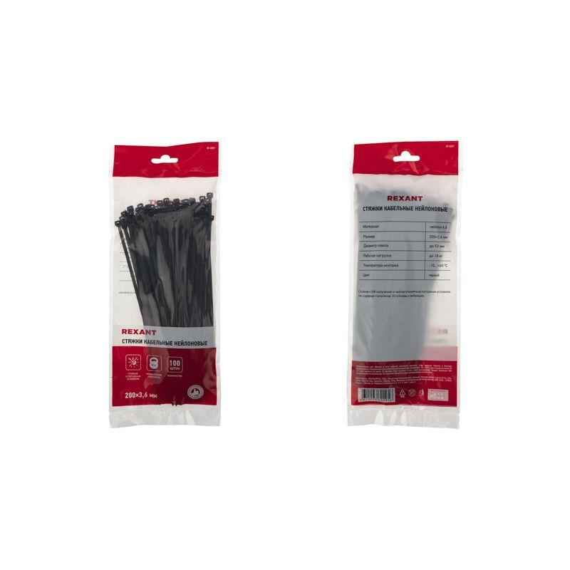 Хомут нейлоновый (кабельная стяжка) 200х3,6 мм чёрный REXANT предназначен для крепления или обвязки в жгут кабелей и проводов, крепления гибких гофротруб, а также других предметов к несущей поверхности или для соединения между собой. Такая стяжка используется при проведении электромонтажных работ, при монтаже структурированных кабельных систем, для бытовых нужд, а также в других отраслях народного хозяйства.