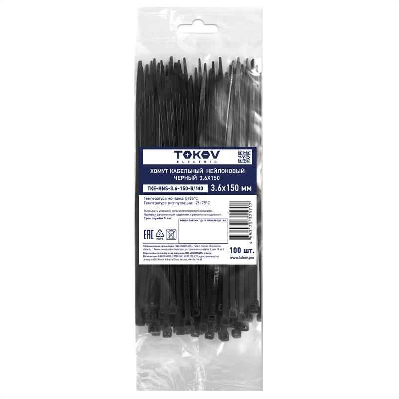 Хомут кабельный нейлоновый черн. 3.6х150 (уп.100шт) TOKOV ELECTRIC TKE-HNS-3.6-150-B/100