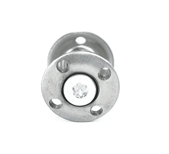 Соединение состоит из двух круглых профилированных прижимных пластин с перфорацией и сквозными отверстиями, а также соединительных винтов М6 с потайной головкой и шлицем TORX Т30. В нижней пластине запрессована гайка для удобства монтажа. Прижимные пластины имеют выпуклости, которые обеспечивают многоточечное равномерное сжатие ленты, уменьшая эффект раздавливания и деформации полотна.