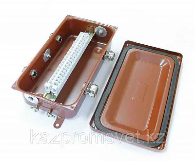 изделие КЗНС представляет собой герметичную разборную металлическую коробку с кабельными вводами и предназначено для соединения и разветвления вторичных и силовых электрических цепей, выполняемых контрольными кабелями с числом жил до 52 и силовыми кабелями с алюминиевыми и медными жилами сечением от 1,5 до 6,0 кв.мм.