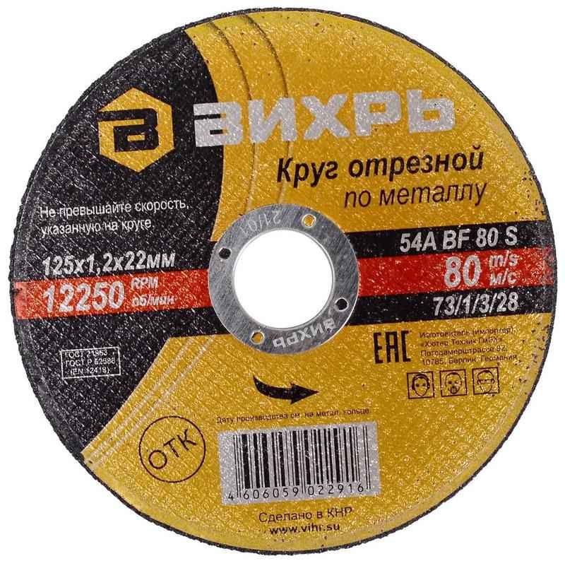 Круг отрезной по металлу 125х1.2х22мм Вихрь 73/1/3/28