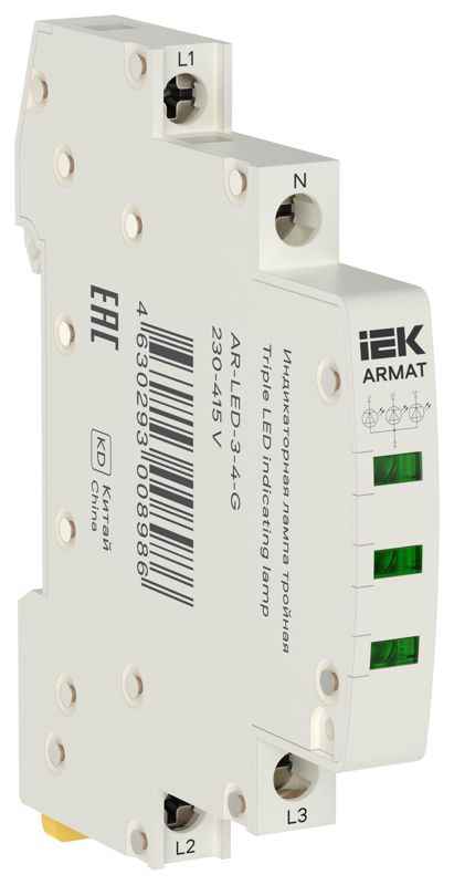 Лампа индикаторная тройная LED 230-415В AC зел. ARMAT IEK AR-LED-3-4-G