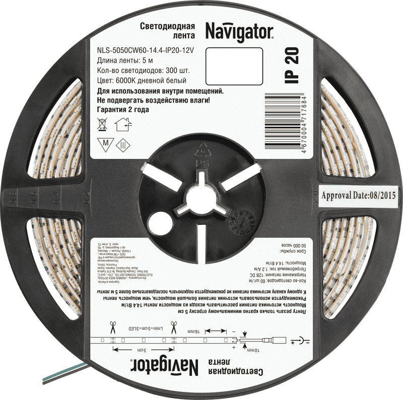 Лента светодиодная 71 768 NLS-5050CW60-14.4-IP20-12V R5 (уп.5м) Navigator 4670004717684 – средство освещения.