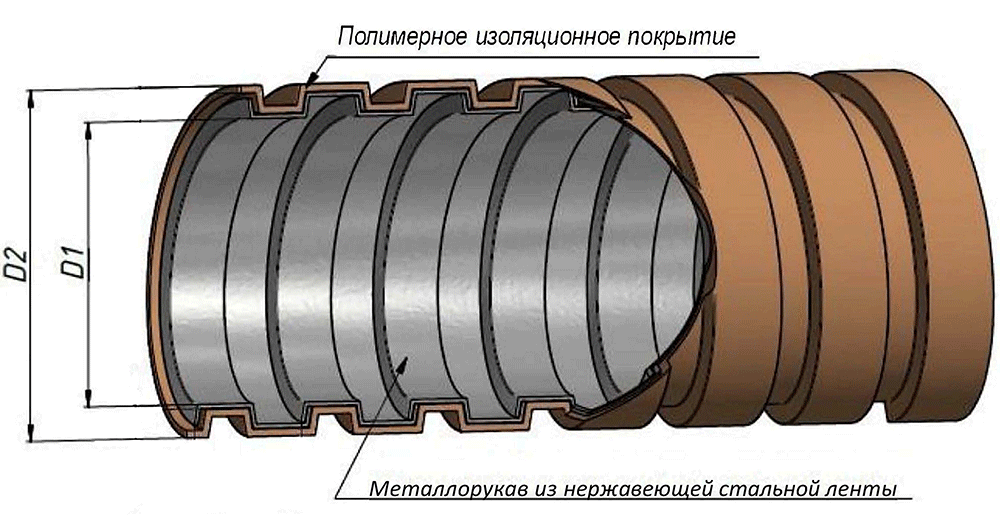 Металлорукав из нержавеющей стали в ПВХ изоляции Р3-НП нг 15 (50 м/уп.) В1,5 ГОФРОМАТИК