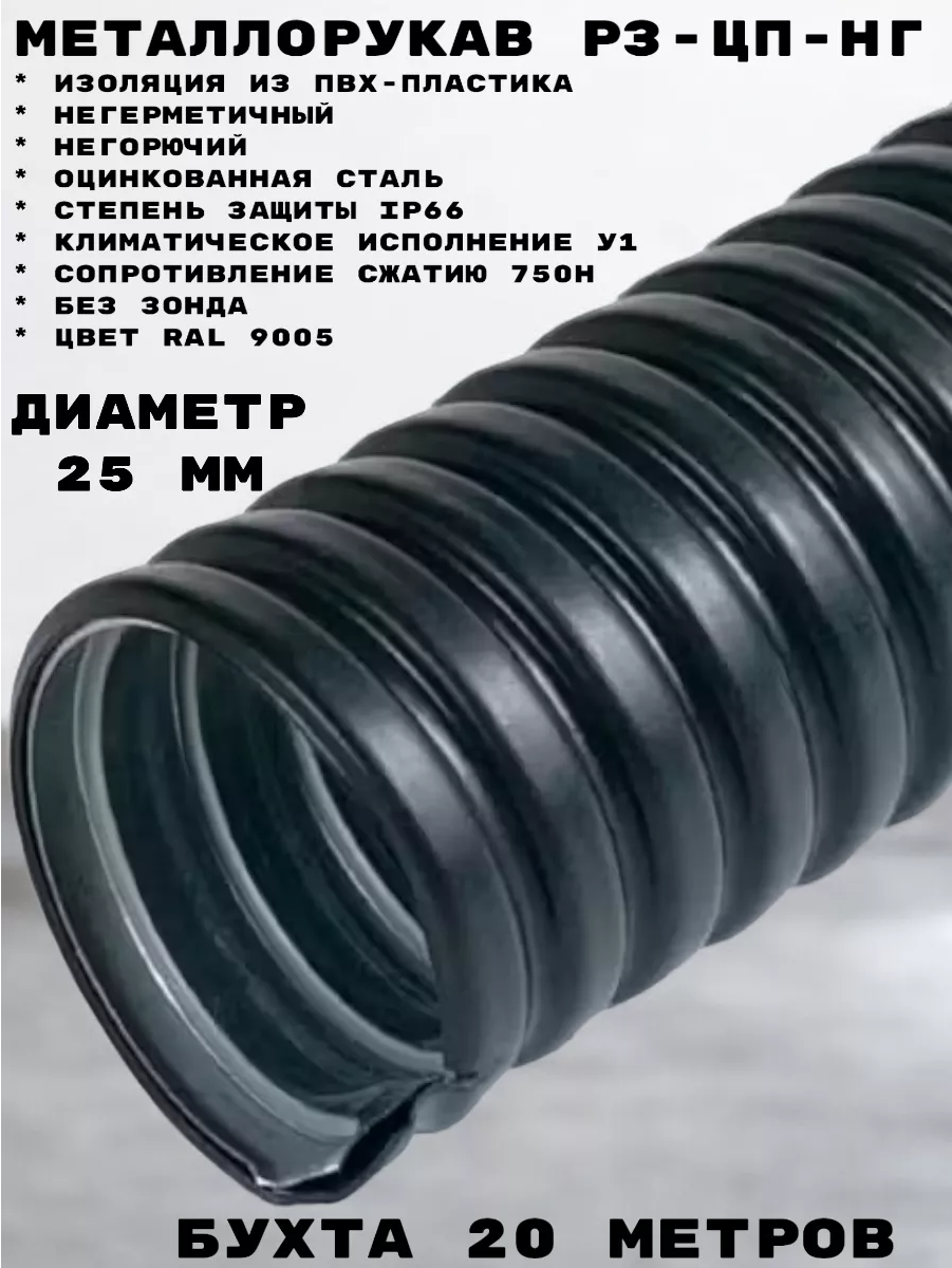 Металлорукав в ПВХ изоляции Р3-ЦП нг 20 (50 м/уп.) серый предназначен для защиты проводов и кабелей от механических повреждений и воздействия внешней среды.